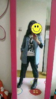 スペース柄のチュニックに、大きめのデニムシャツ羽織ったら、雰囲気変わるかなと思って試したんだ�